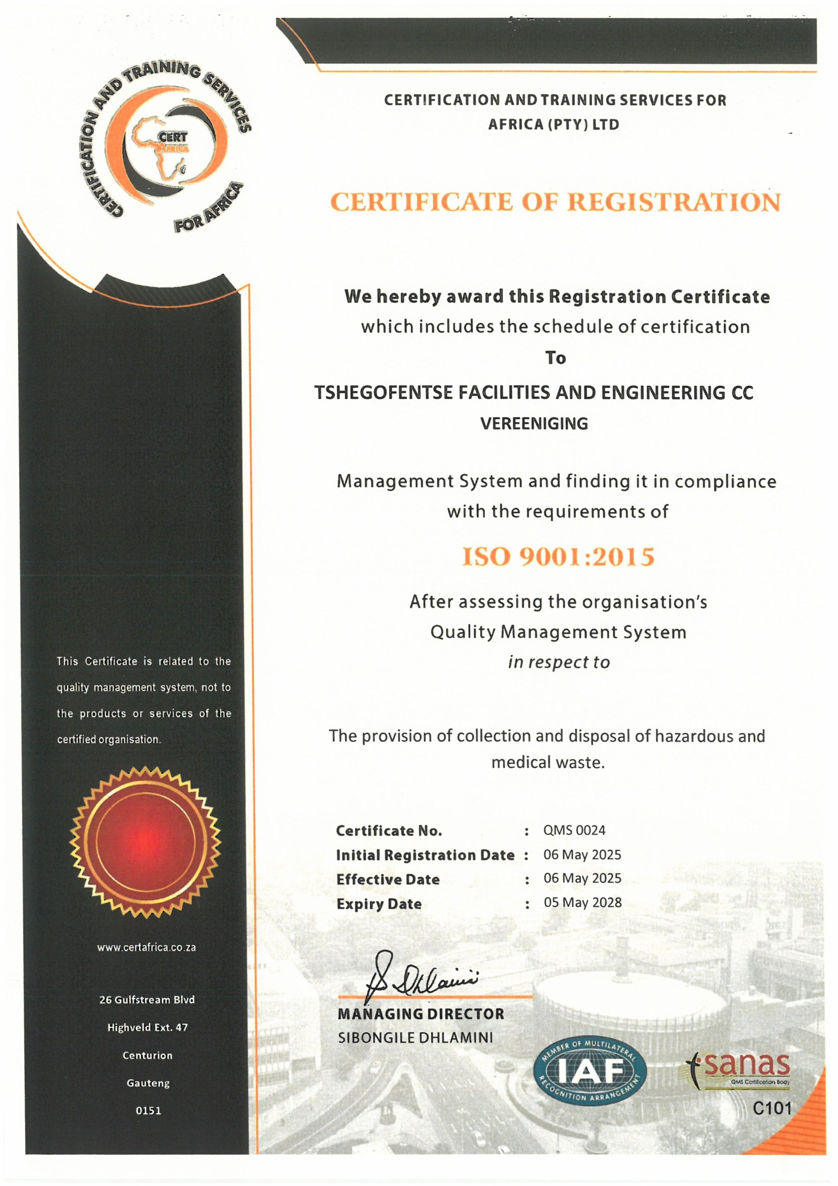ISO & SANAS Accredited